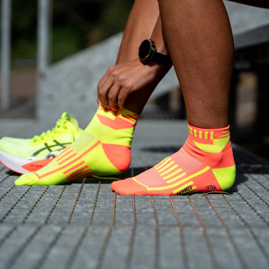 ULTRA TRACK SPORTS SOCKS: ORANGE + YELLOW